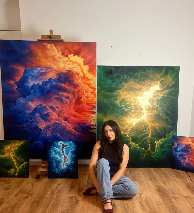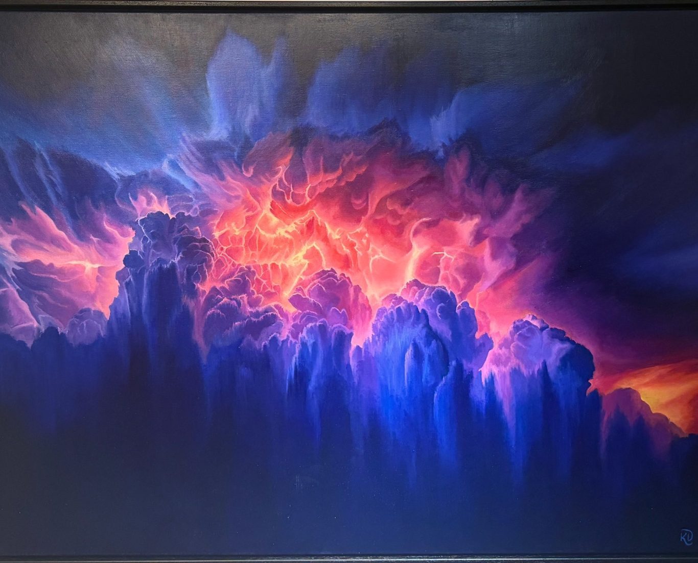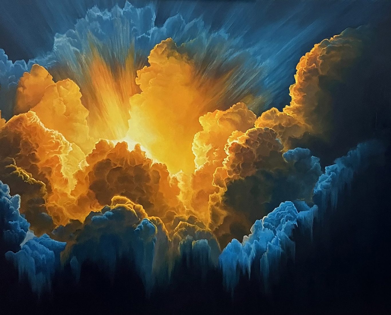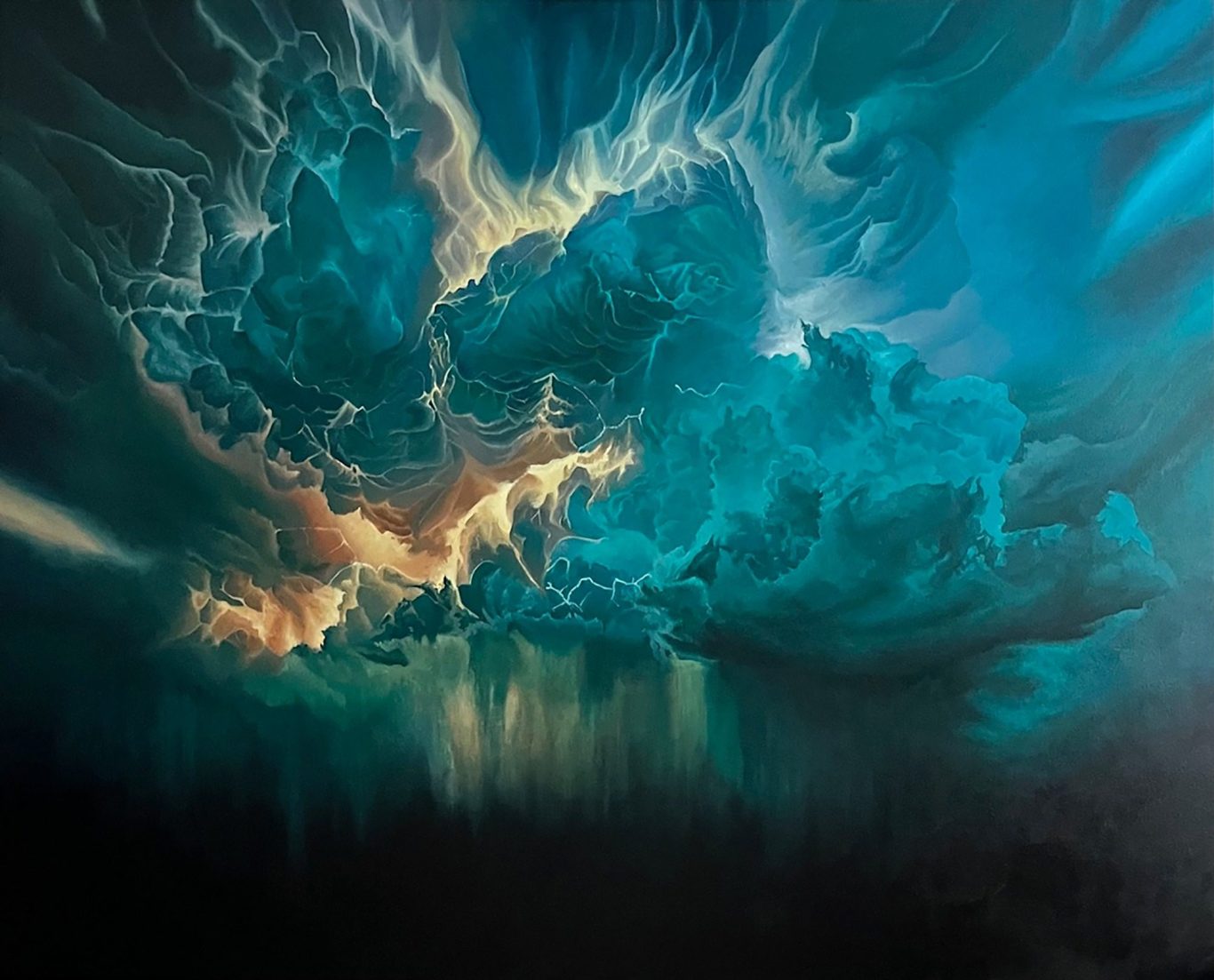 Kelley is an oil painter who explores themes of transformation, energy and the human experience through her impactful cloudscapes & skyscapes.